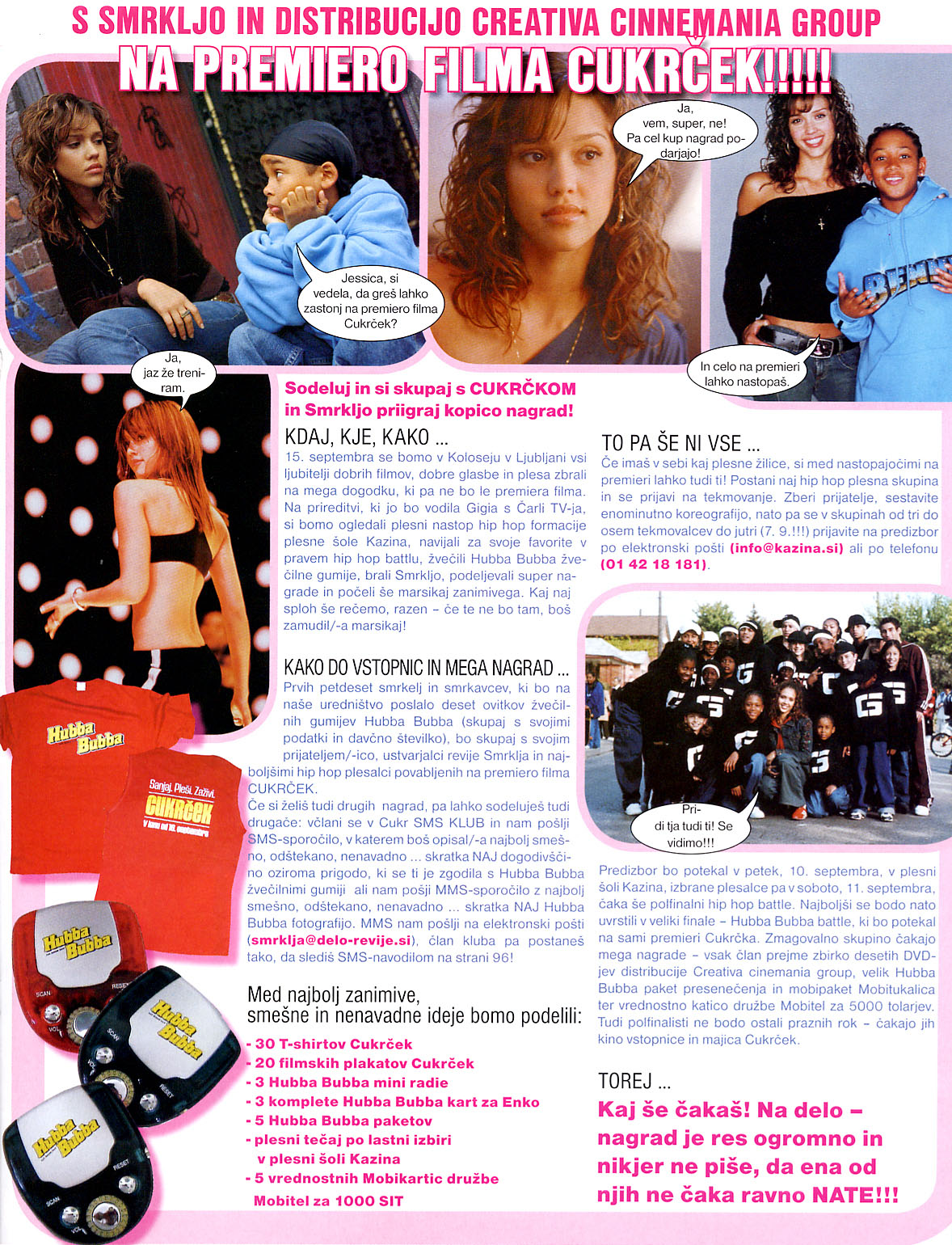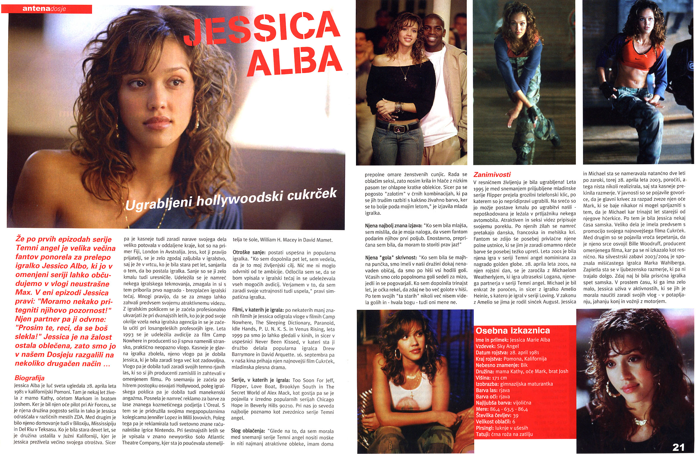 JESSICA ALBA (Honey Daniels) je v filmu Cukrček prvič v svoji karieri prevzela vlogo glavne igralke v celovečercu. Pred kratkim je sodelovala z Jamesom Cameronom pri projektu Dark Angel, ki je bil režiserjev povratek po Titaniku in hkrati njegov prvi televizijski podvig. V Foxovi enourni seriji je igrala vlogo Max, genetsko potenciranega človeškega prototipa, ki pobegne svojim vojaškim stvariteljem in se skrije v Seattleu 21. stoletja. Prva sezona ji je prinesla nominacijo za zlati globus in nagrado People's Choice. Prejela je nagrado TV Guide za najboljšo novinko leta in nagrado Teen Choice za najbolj priljubljeno televizijsko igralko.