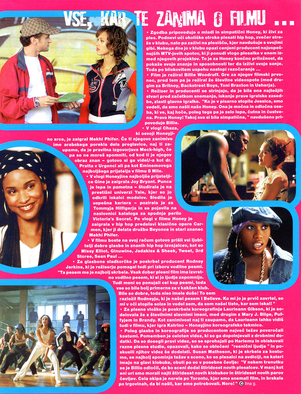 V energični glasbeni drami navdušuje tudi LIL' ROMEO v vlogi Bennyja, ki hrepeni po uspehu podobno kot Honey. MEKHI PHIFER je Honeyjin fant Chaz, trezen, preudaren glas razuma, ki si želi, da bi Honey našla srečo in ostala v njegovem življenju. JOY BRYANT je plesalkina zaščitnica in najboljša prijateljica Gina. Veseli se Honeyjinega uspeha, toda obenem se ji porajajo dvomi. Mlado igralsko zasedbo sestavljajo še DAVID MOSCOW, ZACHARY ISAIAH WILLIAMS in LONETTE MCKEE, v filmu pa gostujejo še MISSY ELLIOTT, GINUWINE, 3rd STOREE, SHAWN DESMAN, TWEET, in JADAKISS & SHEEK.