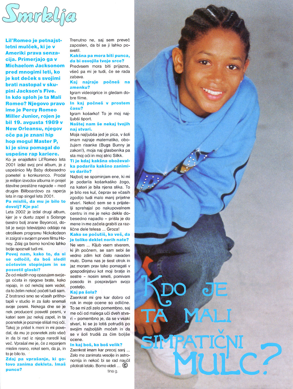 Priljubljeni rap pevec LIL' ROMEO (Benny) je s filmom Cukrček vstopil še v filmski svet. Leta 2001 je pri 14 letih obnorel najstnike s svojim prvim albumom Lil' Romeo, ki se je prodal v milijonski nakladi. Njegova prva uspešnica je bila mala plošča My Baby, ki mu je še istega leta prinesla Billboardovo nagrado za najboljšega rap izvajalca in najboljšo rap pesem. Kot najmlajšemu solistu vseh časov mu je že v prvem tednu uspelo priti na vrh Billboardove lestvice. Svoj igralski talent je dokazal s svojo oddajo na Nickelodeonu Romeo!, v kateri blesti ob svojem očetu. Njegov drugi album Game Time je izšel decembra 2002.