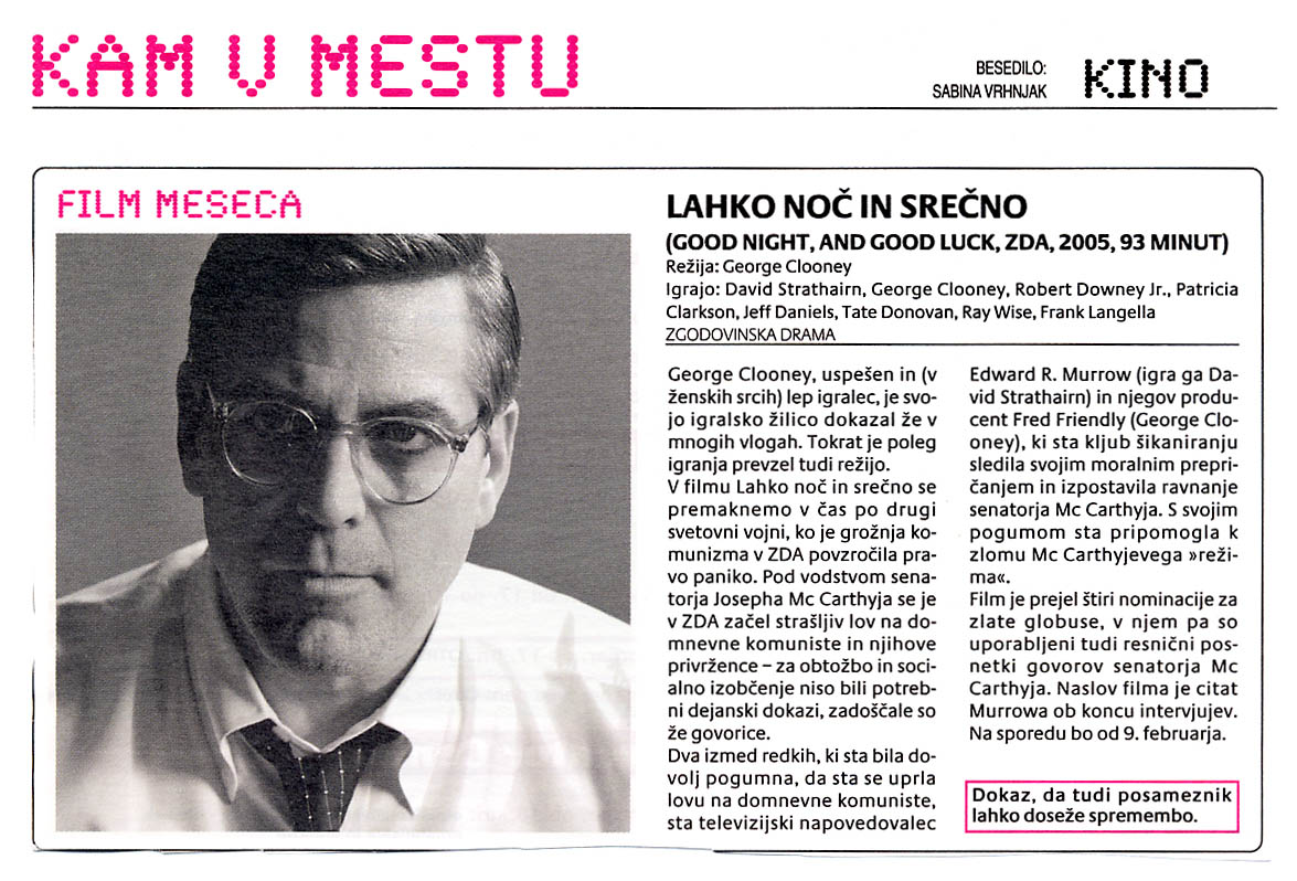 | Lahko noč in srečno (2005) | V kinu od: 9. 02. 2006 |