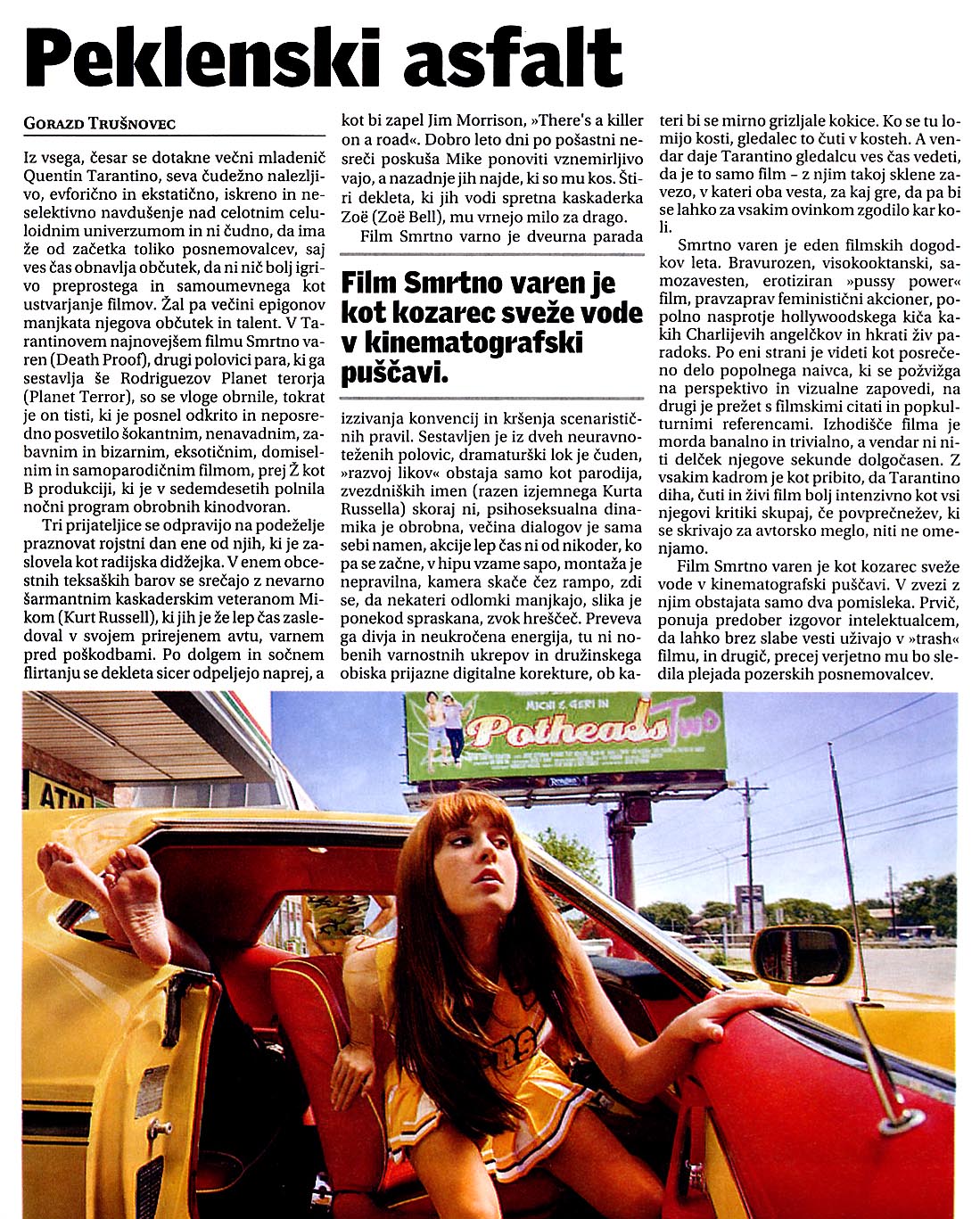 Kurt Russell (kaskader Mike) je nazadnje zaigral v uspešnicah Poseidon in Dreamer, v zadnjih nekaj letih pa je zabeležil prepričljive vloge tudi v celovečercih Miracle, Sky High, Dark Blue, Vanilla Sky in 3000 Miles to Graceland.