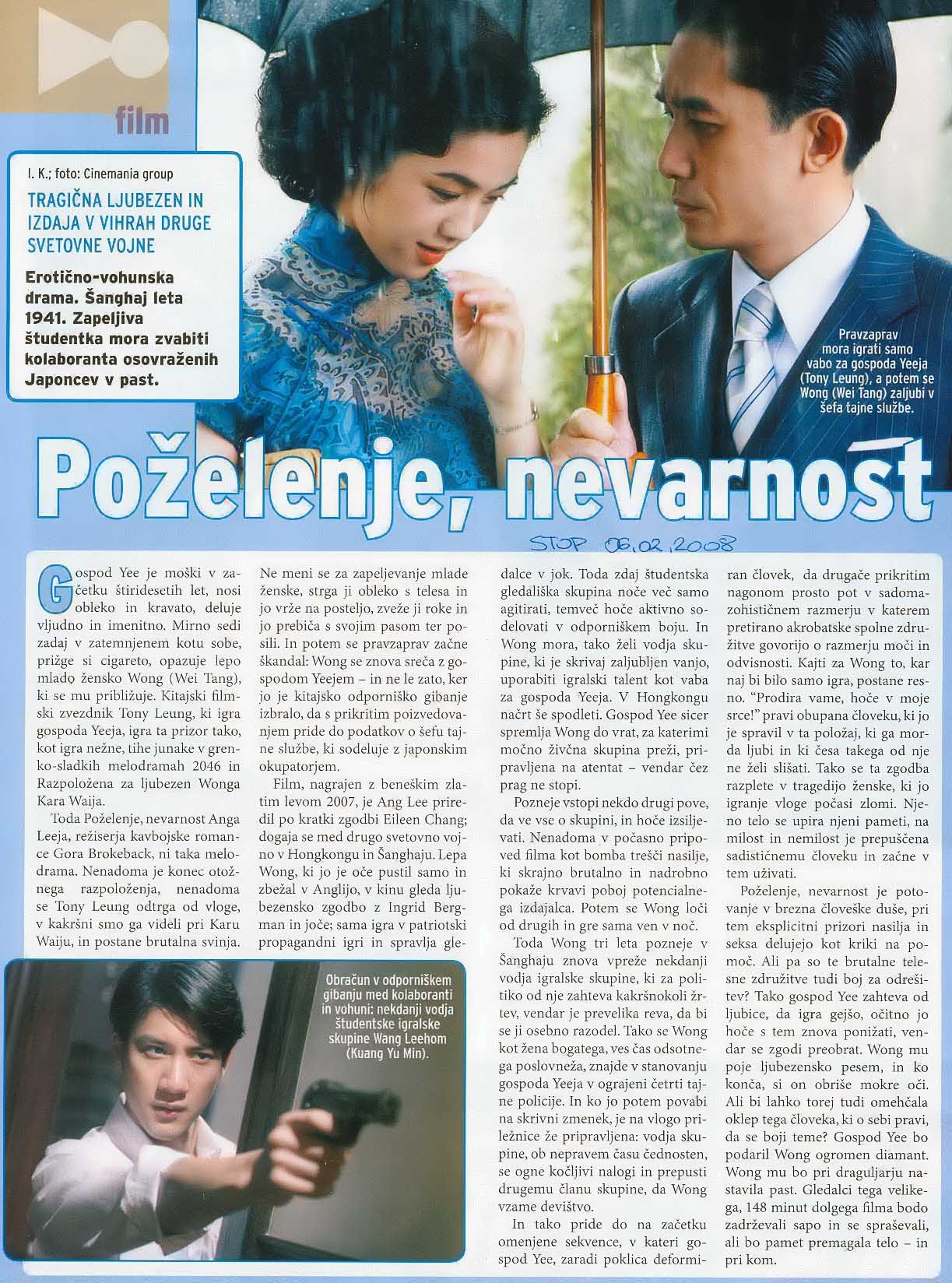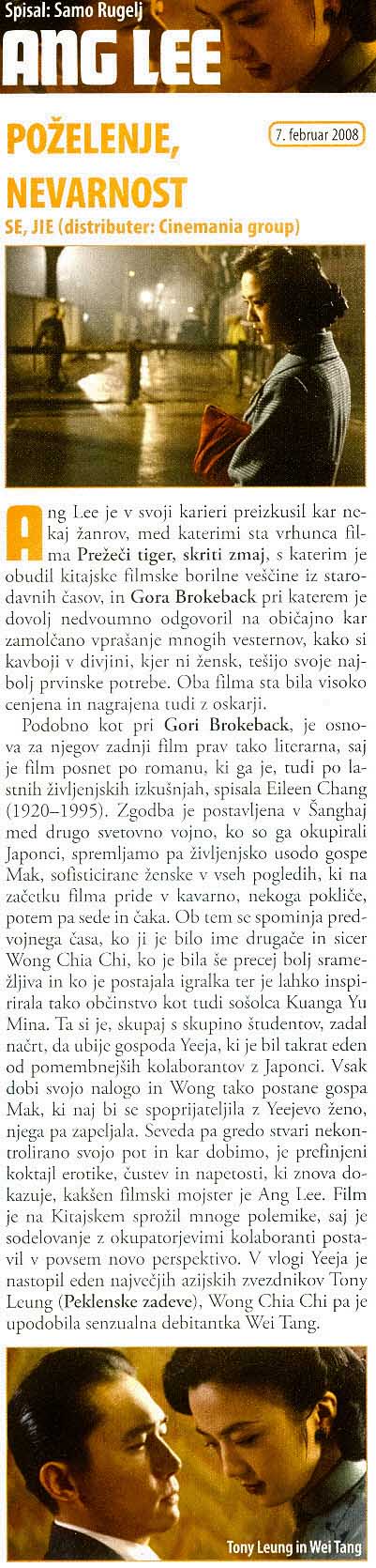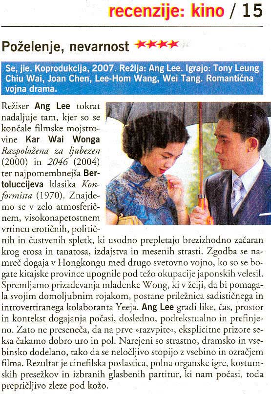 | Poželenje, nevarnost (2007) | V kinu od: 7. 02. 2008 |