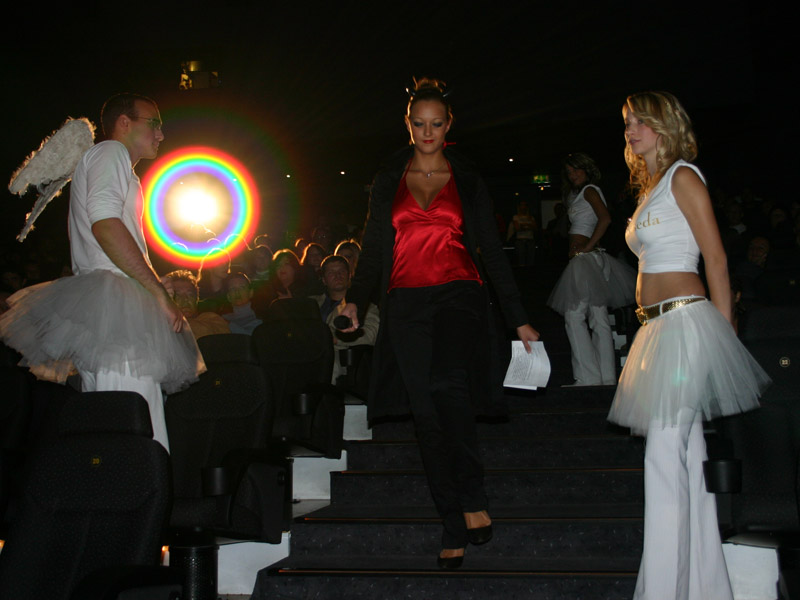 Obiskovalce so ob vhodu sprejeli angelčki, ki so mimogrede finalistke za izbor Lepe sosede 2006, nato pa smo se prepustili dogodivščinam, ki sta jih v filmu pripravljala Angel in Hudič.