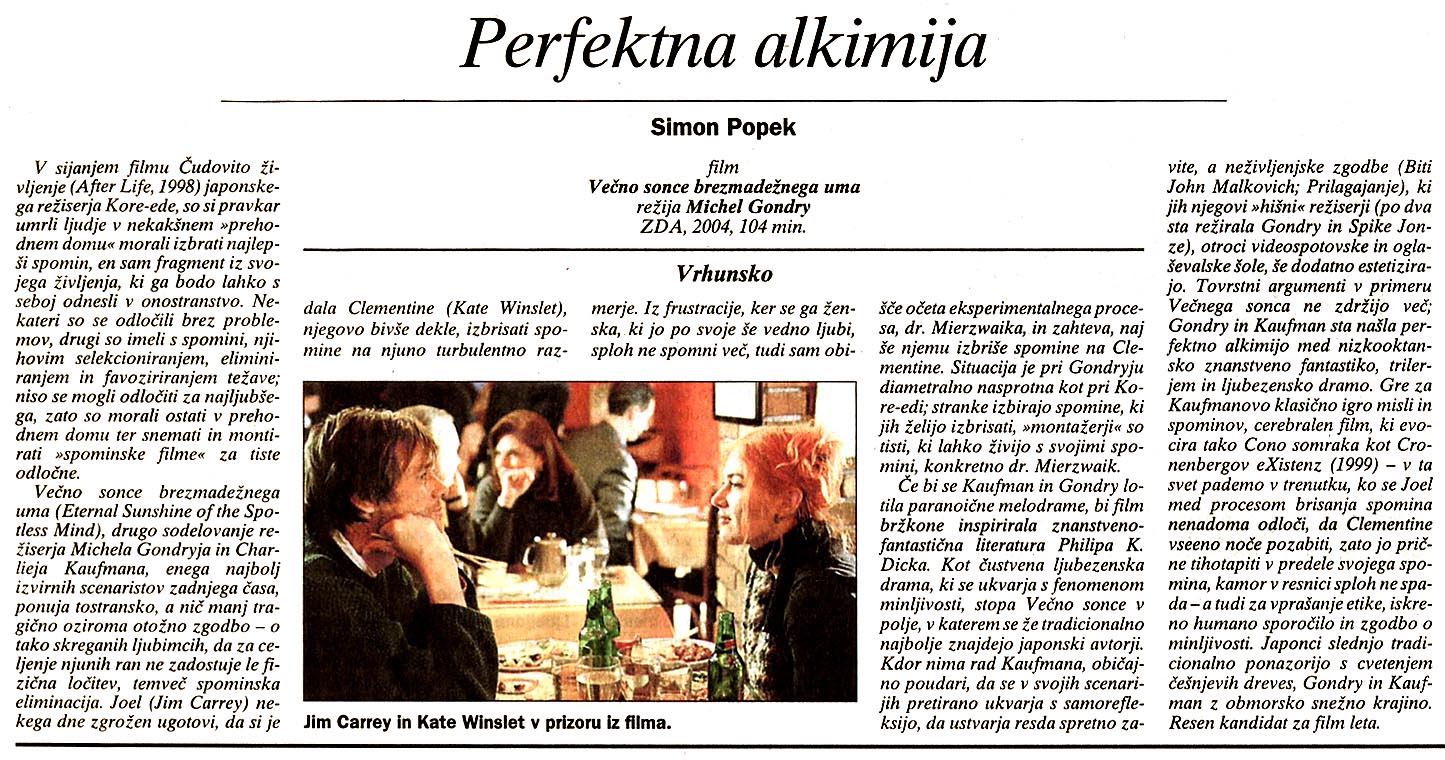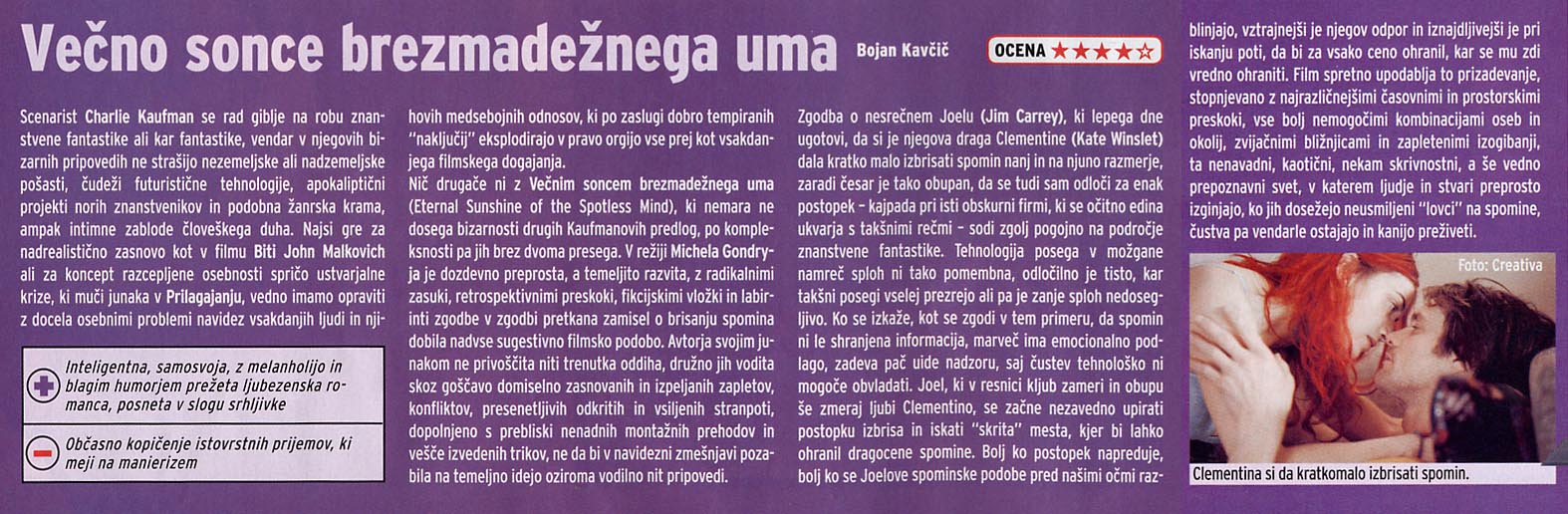 | Večno sonce brezmadežnega uma (2004) | V kinu od: 23. 12. 2004 |