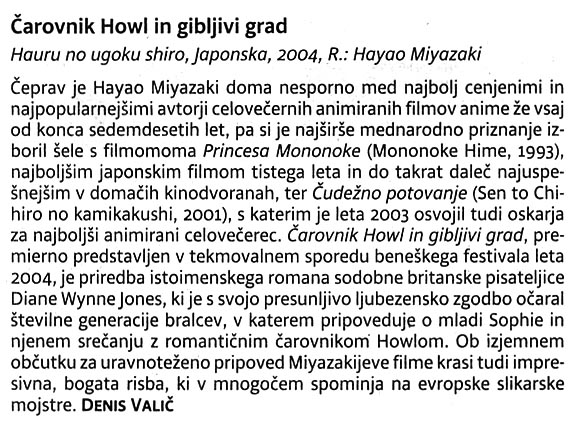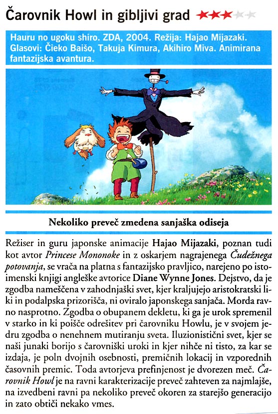 | Čarovnik Howl in gibljivi grad (2004) | V kinu od: 14. 12. 2005 |