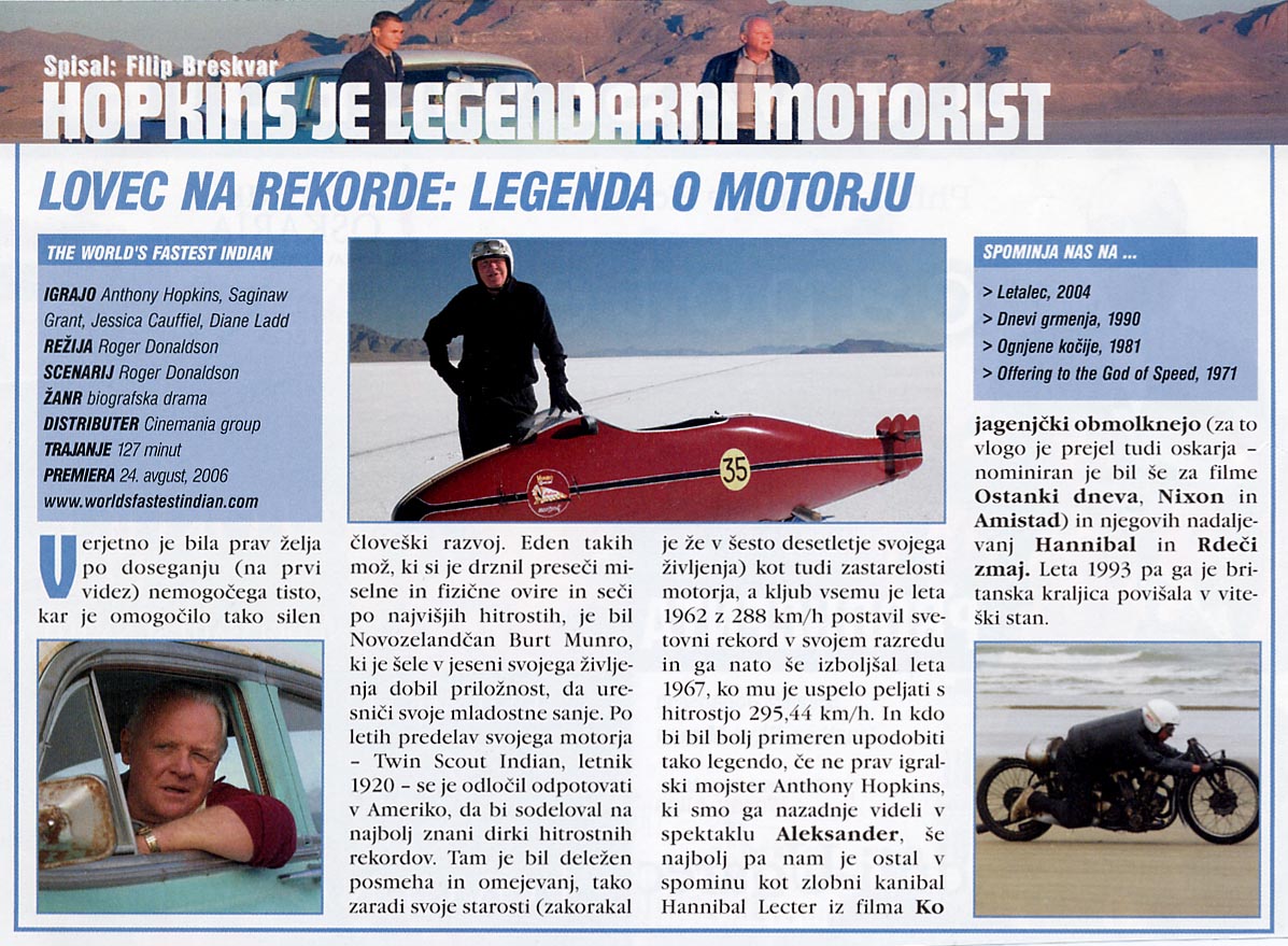Lovec na rekorde: legenda o motorju / World Fastest Indian - KINO - Cinemania group d.o.o., filmi, novice, kino, igralci, nagradna igra, box office