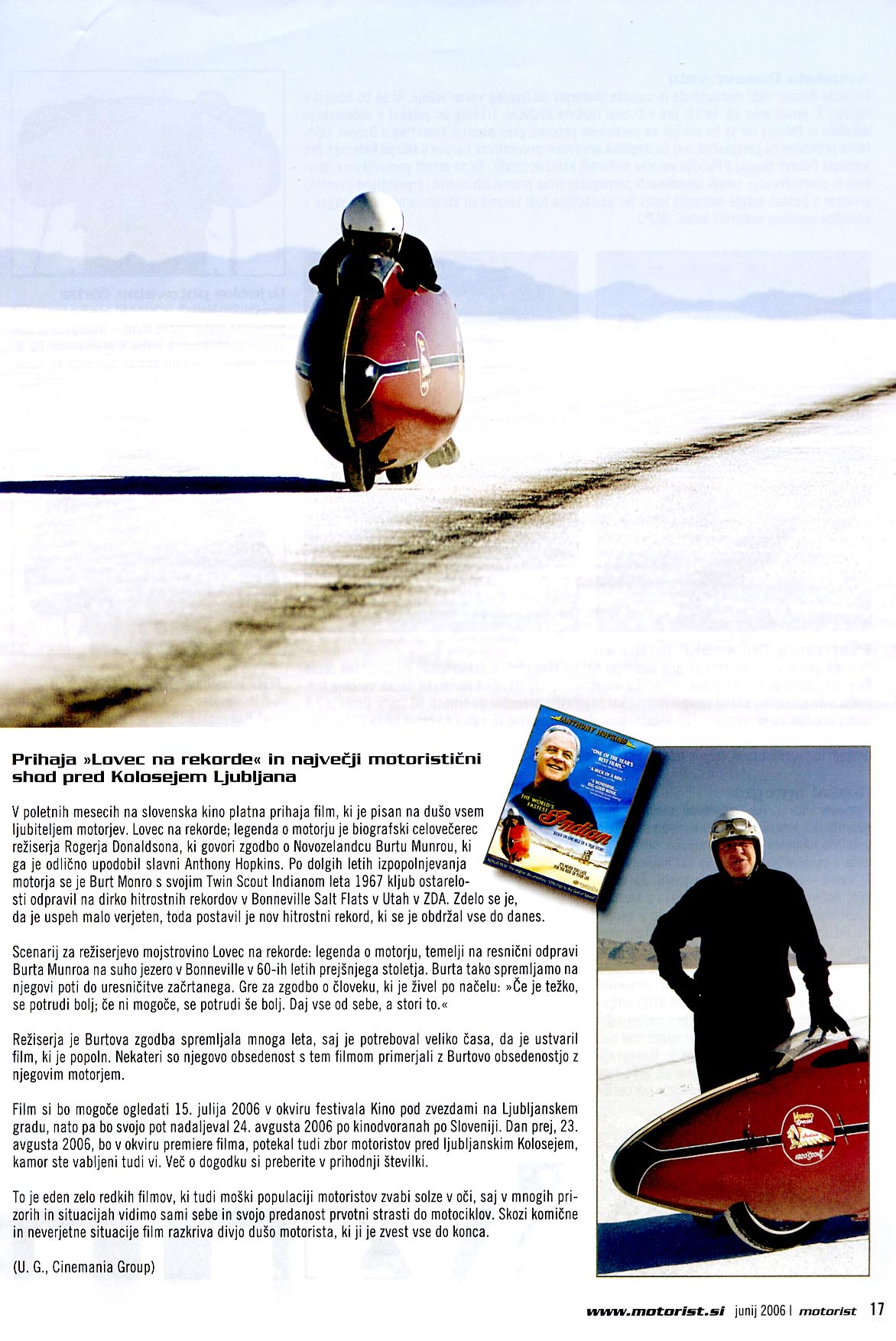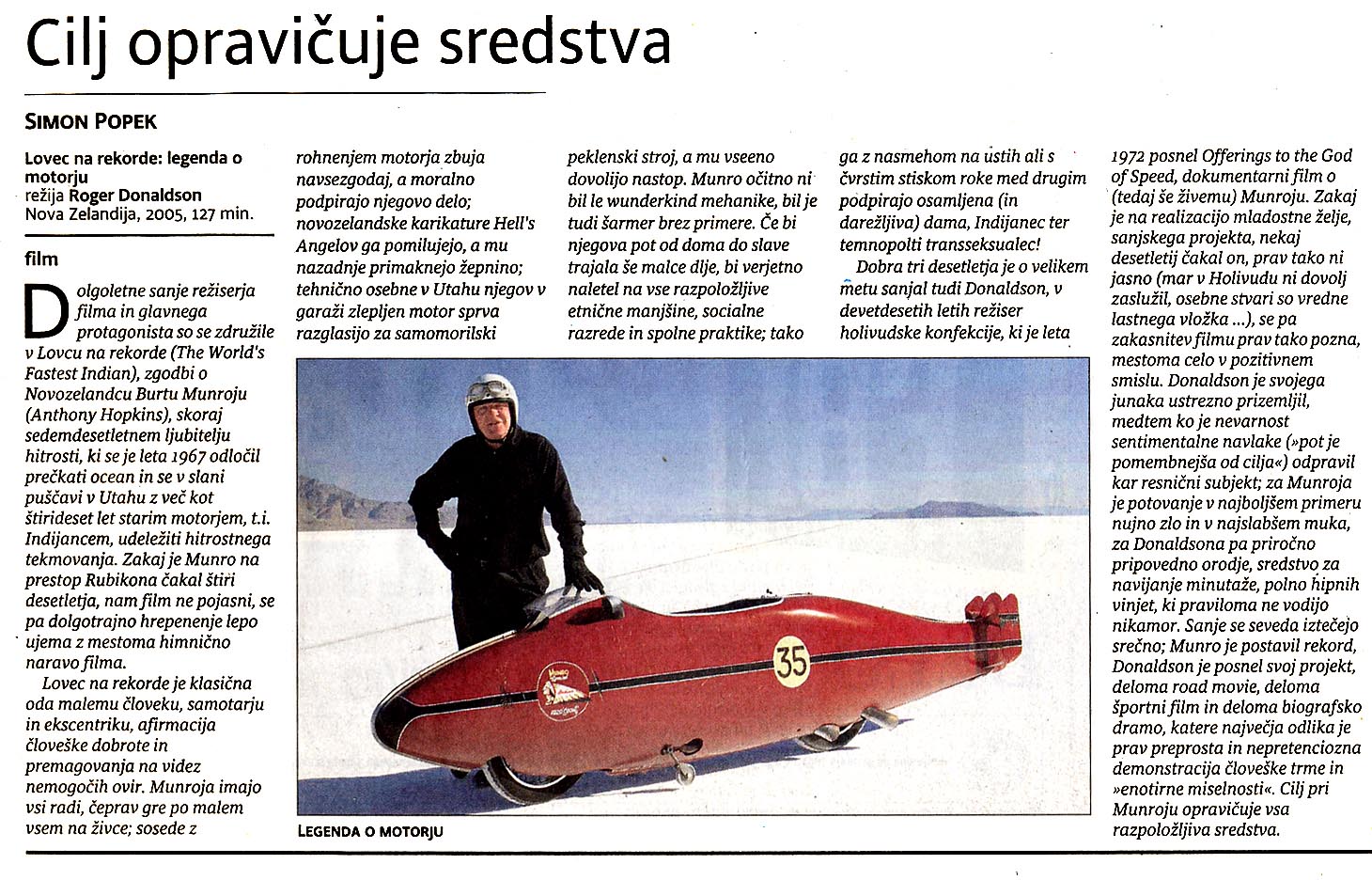 POVSEM ME JE PREVZELO. . . in pričel sem ustvarjati kratki film o življenju Burta Munra . . . posnel sem ga na South Islandu in Bonneville Salt Flatsu, kjer je Burt skušal postaviti hitrostni rekord na svojem starodavnem motorju.