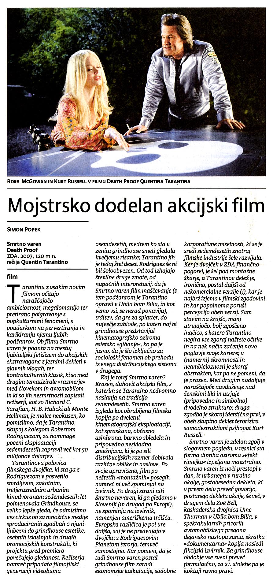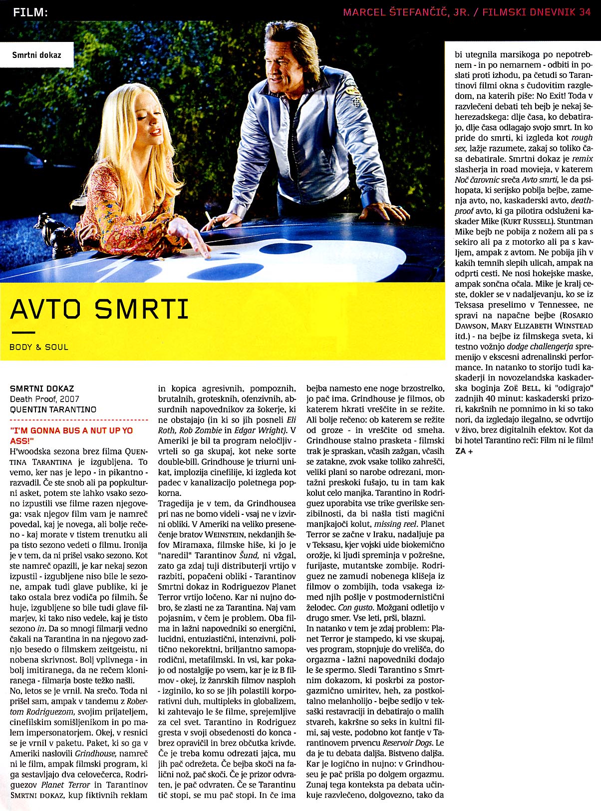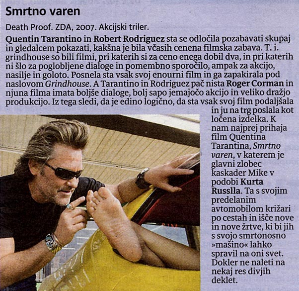 Dolgoletna sodelavca Quentin Tarantino in Robert Rodriguez, dva izmed trenutno najslovitejših filmskih ustvarjalcev, sta v preteklosti že poskrbela za izredne uspešnice, kot so From Dusk Till Dawn, Four Rooms in Sin City. To poletje predstavljata težko pričakovana "grindhouse" filma, prepletena z akcijo in nasiljem. Tarantinova mojstrovina Smrtno varen je vznemirljiva divja vožnja psihopata, serijskega morilca, ki se izživlja za volanom neustavljivega smrtonosnega ubijalskega stroja. Rodriguezov Planet terorja je razburljivo popotovanje v mesto, v katerem je zavladal skrivnostni virus. Po predlogi edinstvenih neodvisnih klasičnih grozljivk iz 60-ih in 70-ih let prejšnjega stoletja sta nastala dva pretresljiva celovečerca z obilico krvoločnih akcij in prizorov.