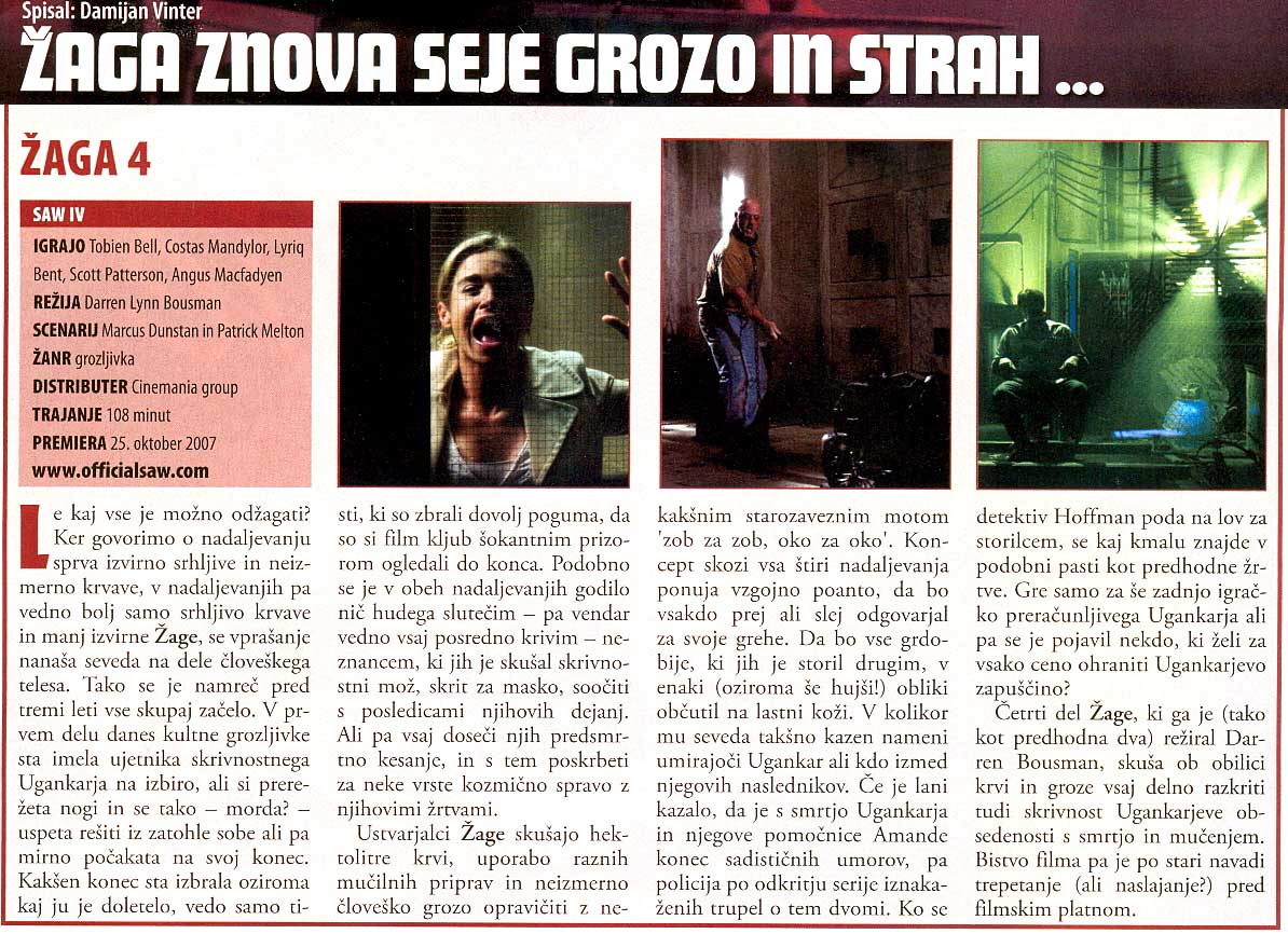| Žaga IV (2007) | V kinu od: 26. 10. 2007 |