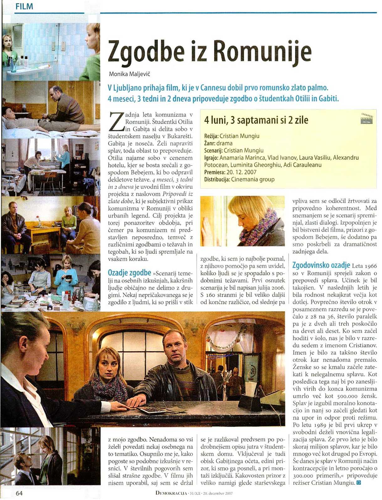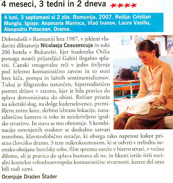 4 meseci, 3 tedni in 2 dneva (2007)V kinu od: 20. 12. 2007