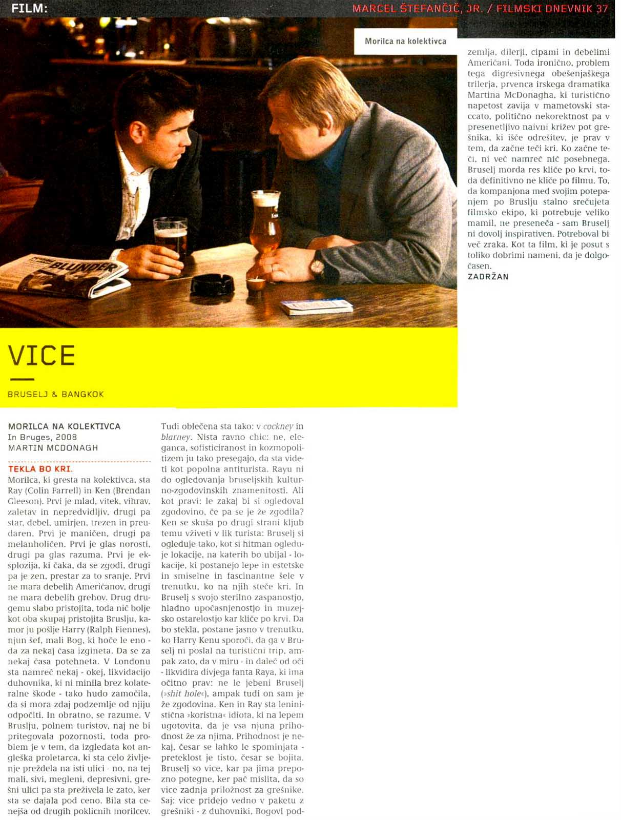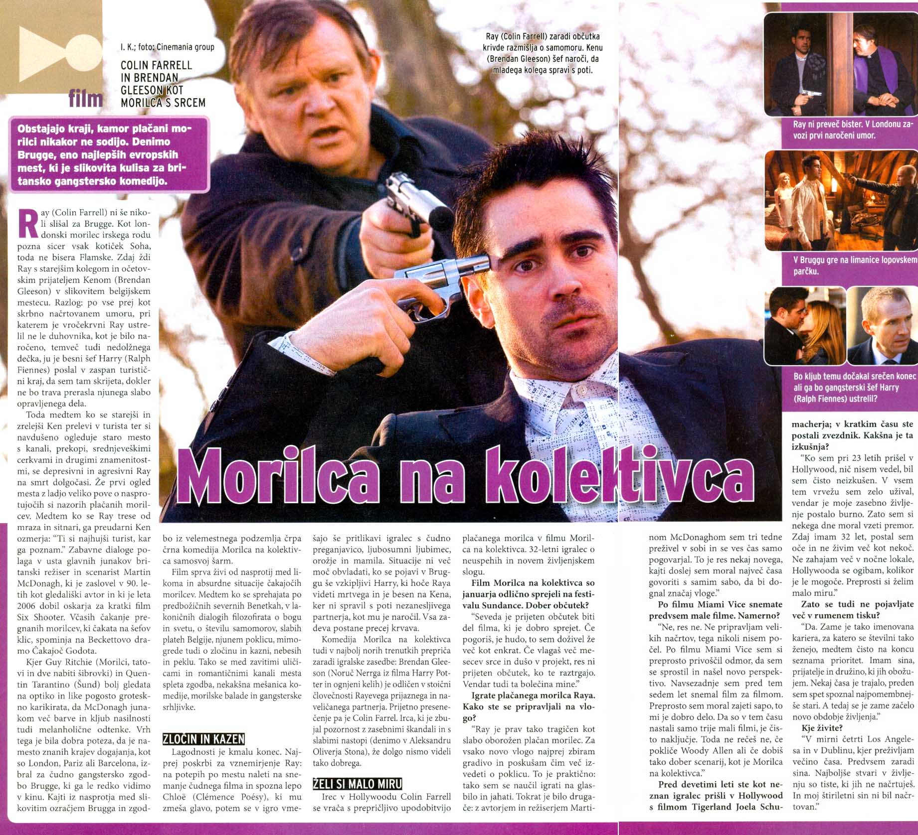 Ujeta med gotsko arhitekturo, kanali in tlakovanimi ulicami si poskušata poklicna morilca zapolniti dneve v vlogi turistov. Ray, ki še vedno premleva zadnjo krvavo naročilo, sovraži kraj, medtem ko Ken uživa v miru, ki ga ponuja lepo in čisto mesto.