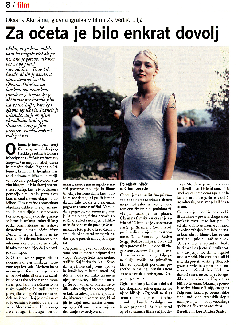| Za vedno Lilja (2002) | V kinu od: 29. 07. 2004 |