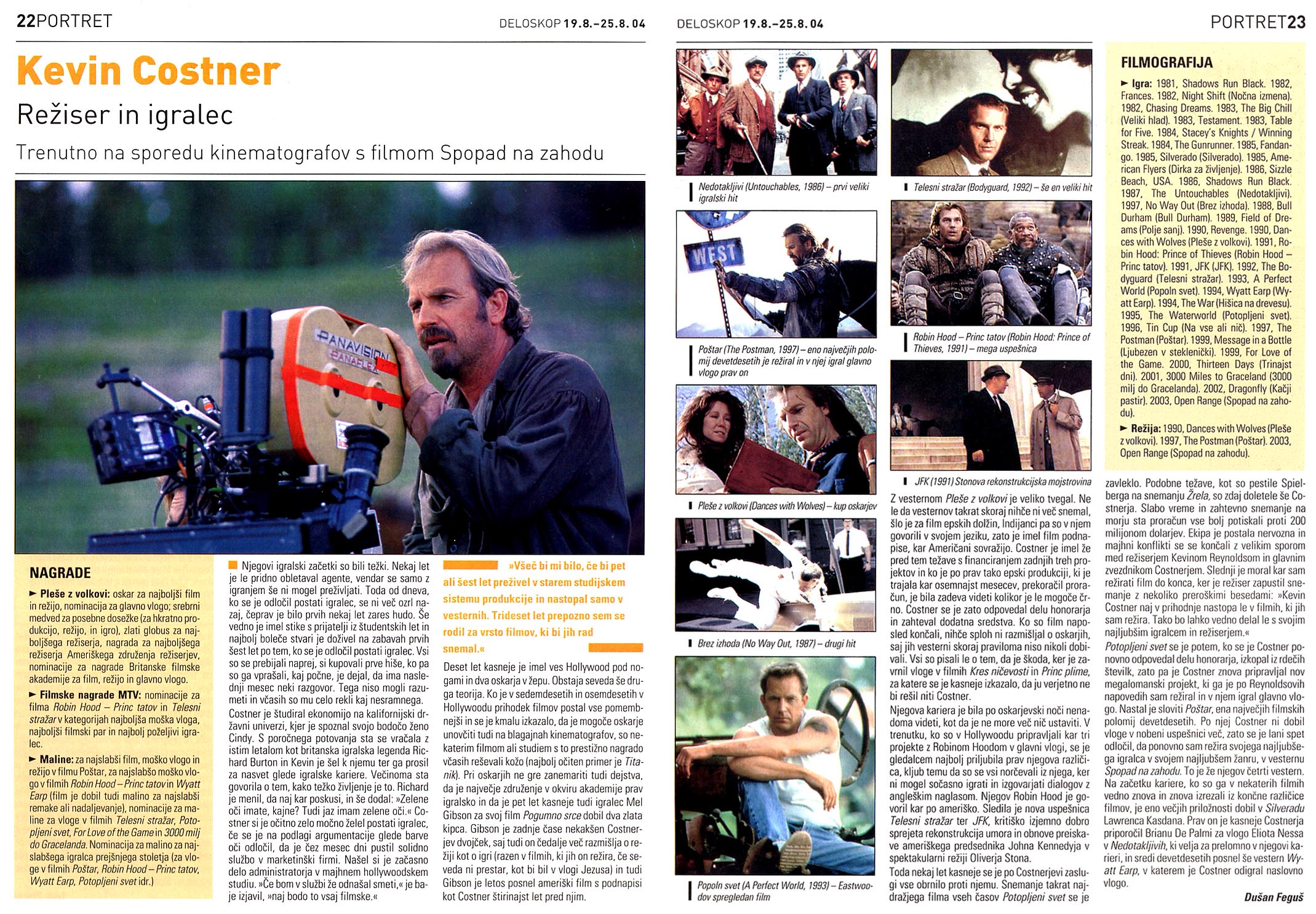 Kevin Costner (Charley Waite) je svojo naklonjenost do vesternov pokazal že leta 1985, ko je zaigral v sagi Lawrencea Kasdana Silverado. Leta 1990 se je s tem žanrom povsem poistosvetil. Produciral in režiral je film Dances with Wolves ter v njem tudi zaigral. Film je prejel sedem oskarjev, med drugim tudi za najboljši celovečerec in najboljšega režiserja. Costner je nato navdušil v Kasdanovem filmu Wyatt Earp. Svoje zanimanje za ameriška plemena je prikazal tudi s televizijskim dokumentarcem 500 Nations. Kot producent, režiser in igralec se je dokazal s projektom The Postman, kot producent in zvezdniški igralec pa s celovečercem Waterworld. Kot ljubitelj bejzbola je odigral vloge v filmih Bull Durham, For Love of the Game in Field of Dreams, v celovečercih American Flyers in Tin Cup pa je bil kolesar, oziroma poklicni golfist.
