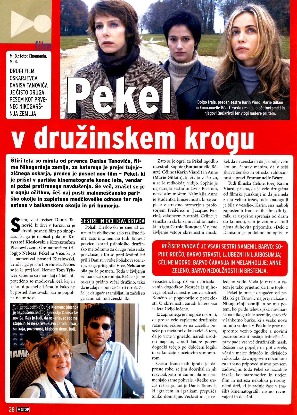 Tik pred začetkom snemanja svojega prvega celovečerca Nikogaršnja zemlja sem prebral tri scenarije Krzysztofa Kieslowskega in Krzysztofa Piesiewicza za trilogijo Nebesa, Pekel, Vice. Pritegnil me je Vice z zgodbo o sodobnem vojnem fotografu. Takrat mi je bilo to najbližje. Nekaj let kasneje sem se med ustvarjanjem novega filma vrnil k scenarijema Pekel in Vice. Celovečerec Nebesa je bil že posnet. Tokrat me je prevzel Pekel. Zakaj? Menim, da zato, ker sem se v tem času poročil, dobil otroke. Navdušili so me ženski liki. Do tedaj so bili moji liki moški, vpleteni v vojno. Zdaj so to vlogo prevzele tri mlade ženske in zgodba, ki obravnava pomembna eksistenčna vprašanja, s katerimi se srečujemo na vsakem koraku. Pekel je lahko del vsakdanjega življenja. Če ga želimo občutiti, nam ni treba v Afganistan. V državah, ki bijejo vojno, sem srečal ljudi, ki so bili srečnejši, kot če bi živeli v Parizu. Te elemente sem želel prilagoditi in jih uporabiti za svoj nov film. Moje občinstvo je zrelo. Nočem ponujati odgovorov. Svoje gledalce želim privesti v tako čustveno razpoloženje, da bodo sami skušali poiskati pravo pot in odgovore. Vsaka sestra posebej je v meni prebudila drugačno barvo. Za Sophie je rdeča, kot strast, ljubezen, ljubosumje. Za Anne je zelena, kot nedolžnost, začetek, pomlad. Za Céline je modra, kot žalost, čakanje, melanholija.