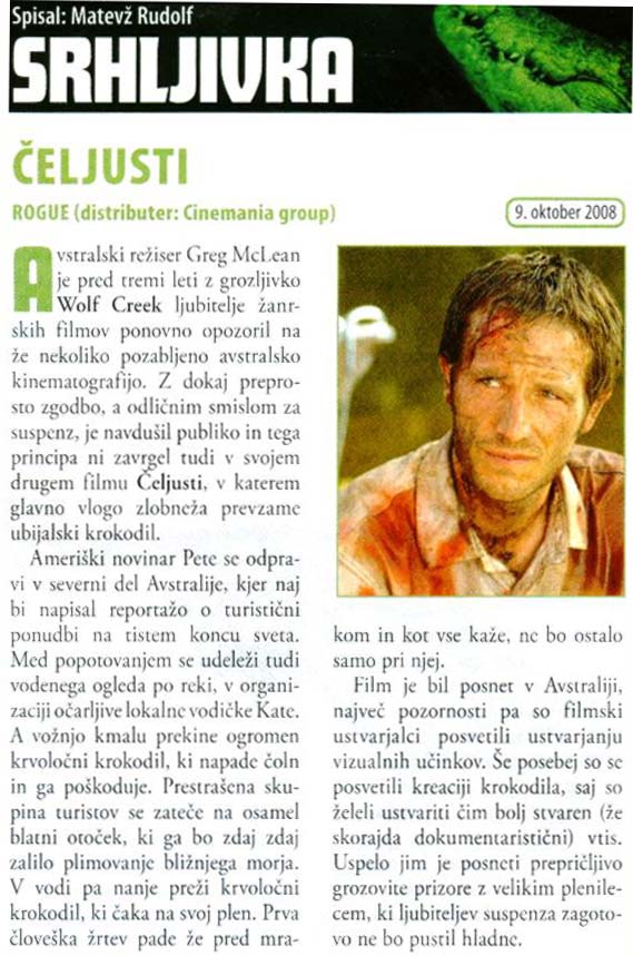 Skupni projekt Dimension Films in The Weinstein Company, Rogue, je bil dogovorjen še pred uspehom celovečerca Wolf Creek. Zanj je bil predviden mnogo večji proračun (25 milijonov dolarjev) kot za Wolf Creek (le 1,38 milijonov). Ta znesek je omogočil uporabo najsodobnejše tehnologije, s pomočjo katere je film o ubijalskem krokodilu karseda realen.